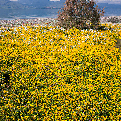 This image was taken from quite a high vantage point in order to look through the veil of leaves and to try to show the flowers into the distance.<br />