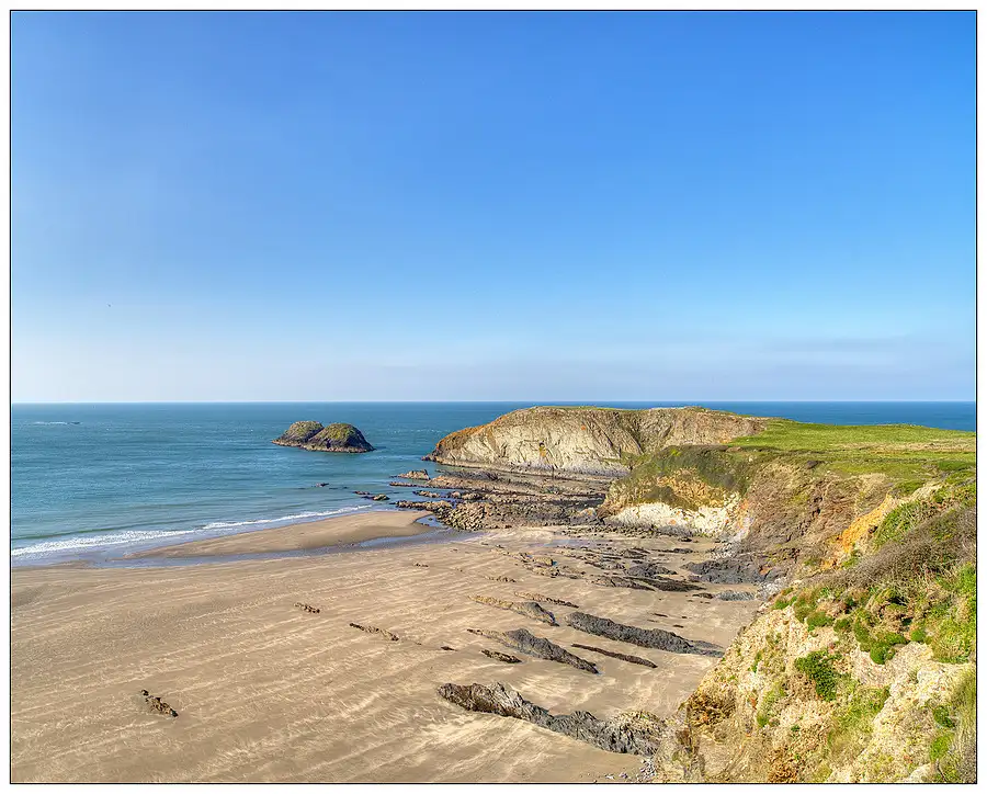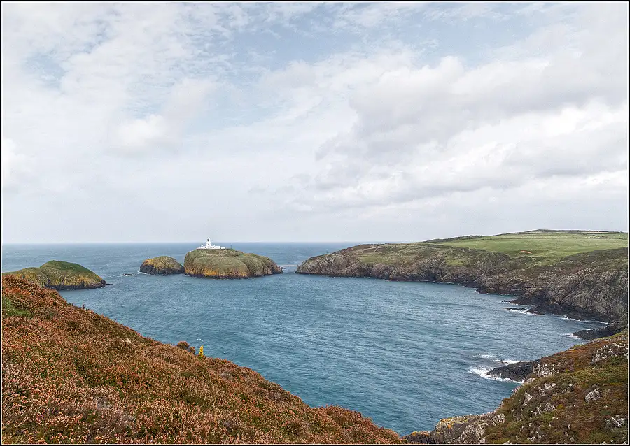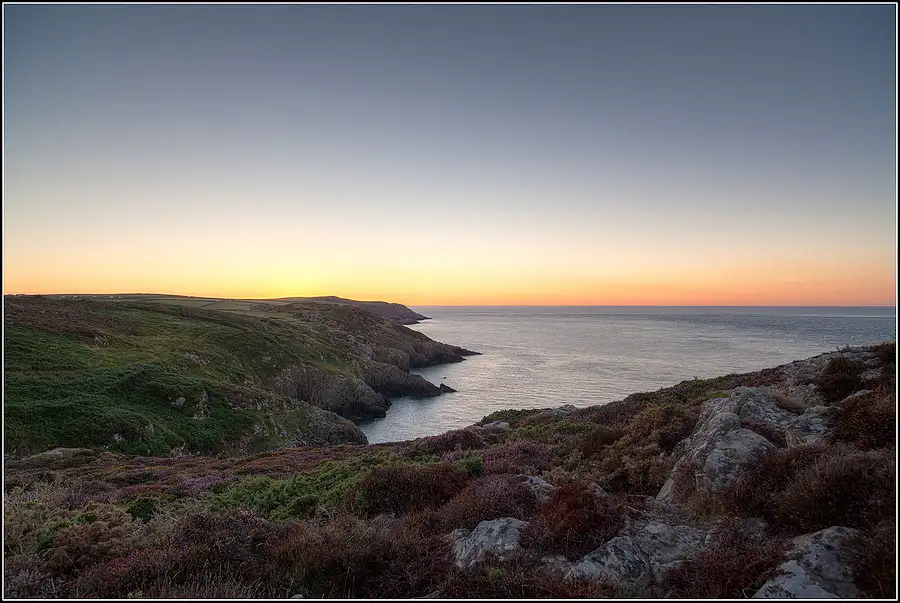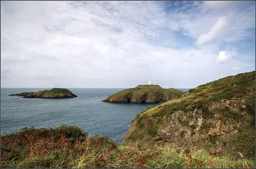 Shot at +2/3EV on the Pembrokeshire Coast Path National Trail, West Wales. A single RAW Frame converted and processed with Adobe Photoshop Lightroom 5 to Nik's ColorEfex Pro 4 software. A Graduated Filter has been applied.