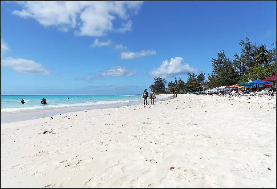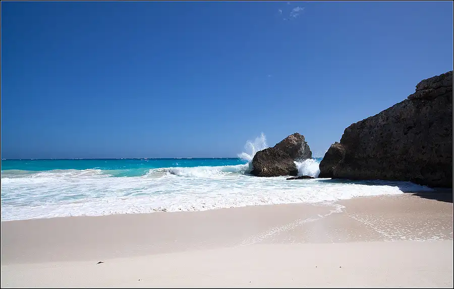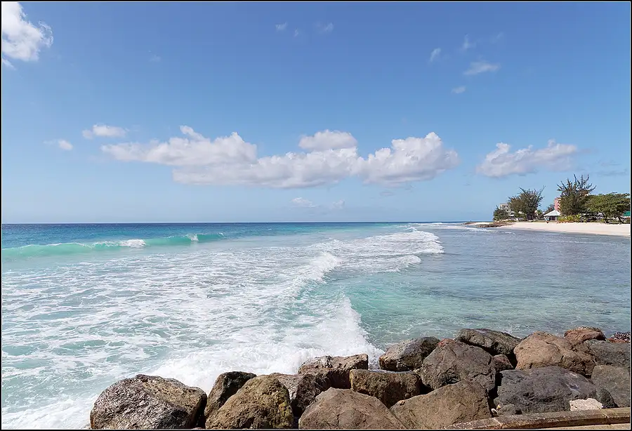I am sure that there are better beaches in the World but I have not seen one as good as this. Awesome! Must be in the Top 20 Beat Beaches in the World. Shot from the headland below the Crane Beach Resort.This South Easterly facing beach is protected from the full force of the Atlantic by a large reef about one mile out, but never the less can be quite rough. Great fun if you can swim well.