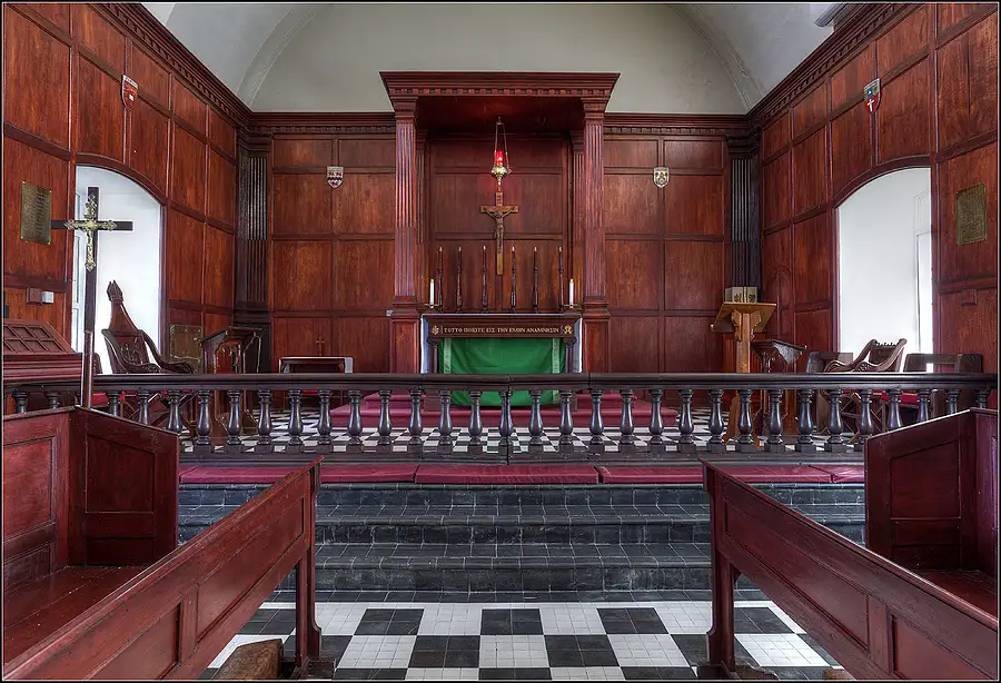 Small, beautifully paneled Chapel at Codrington College, St John, Barbados, West Indies. The paneling is local Mahogany.<br />