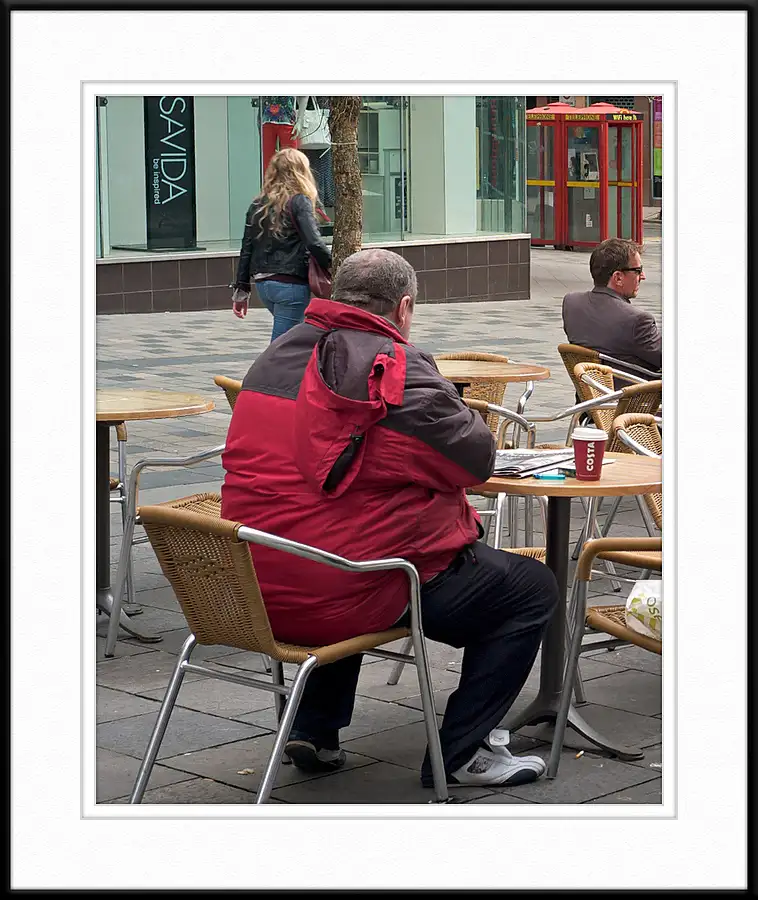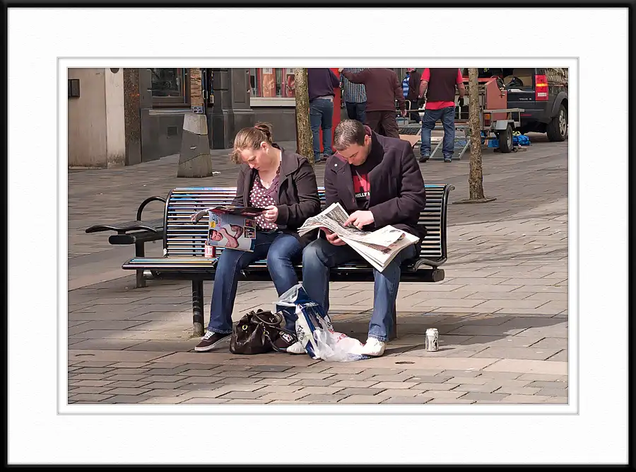 Reading the Sunday papers on Sauchiehall Street, Glasgow, Scotland