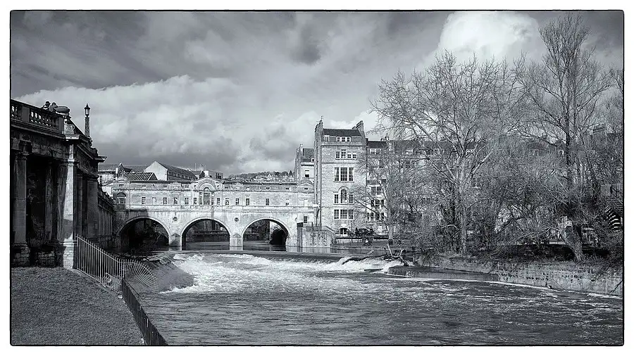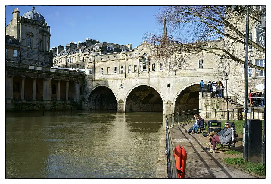 Pulteney Bridge crosses the River Avon in Bath, England. It was completed by 1774, and connected the city with the newly built Georgian town of Bathwick. Designed by Robert Adam in a Palladian style, it is one of only four bridges in the world with shops across its full span on both sides. It has been designated as a Grade I listed building.
