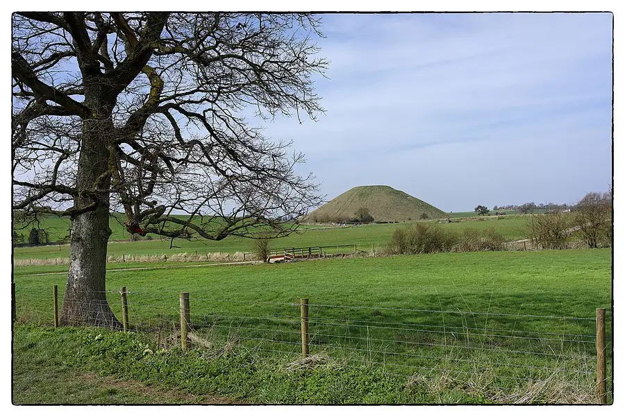 The largest man-made mound in Europe, mysterious Silbury Hill compares in height and volume to the roughly contemporary Egyptian pyramids. Probably completed in around 2400 BC, it apparently contains no burial. Though clearly important in itself, its purpose and significance remain unknown.