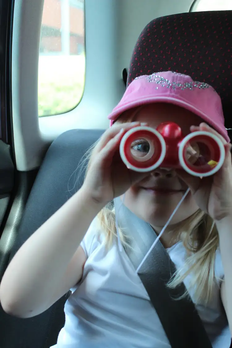 trying out binoculars