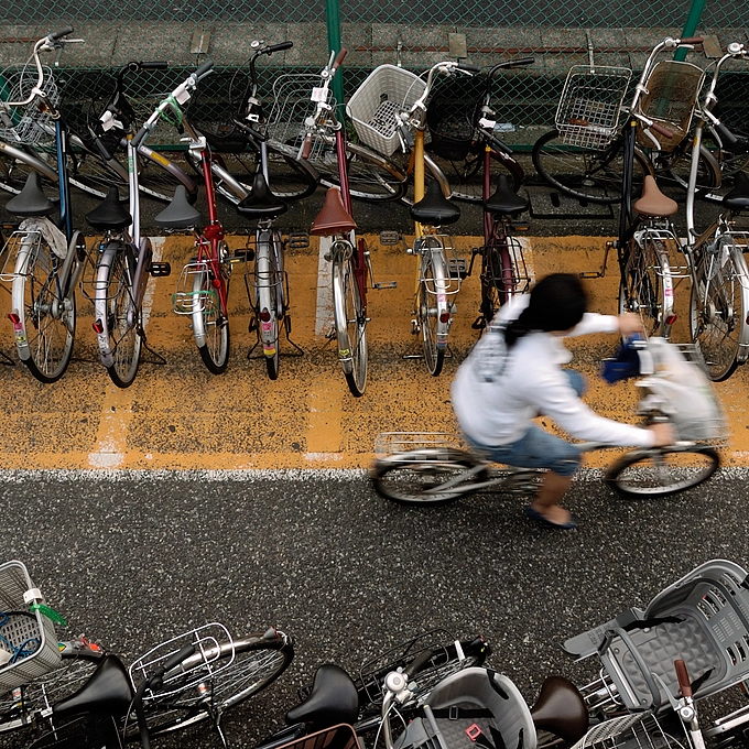 Bicycle rider in Tokyo, Japan