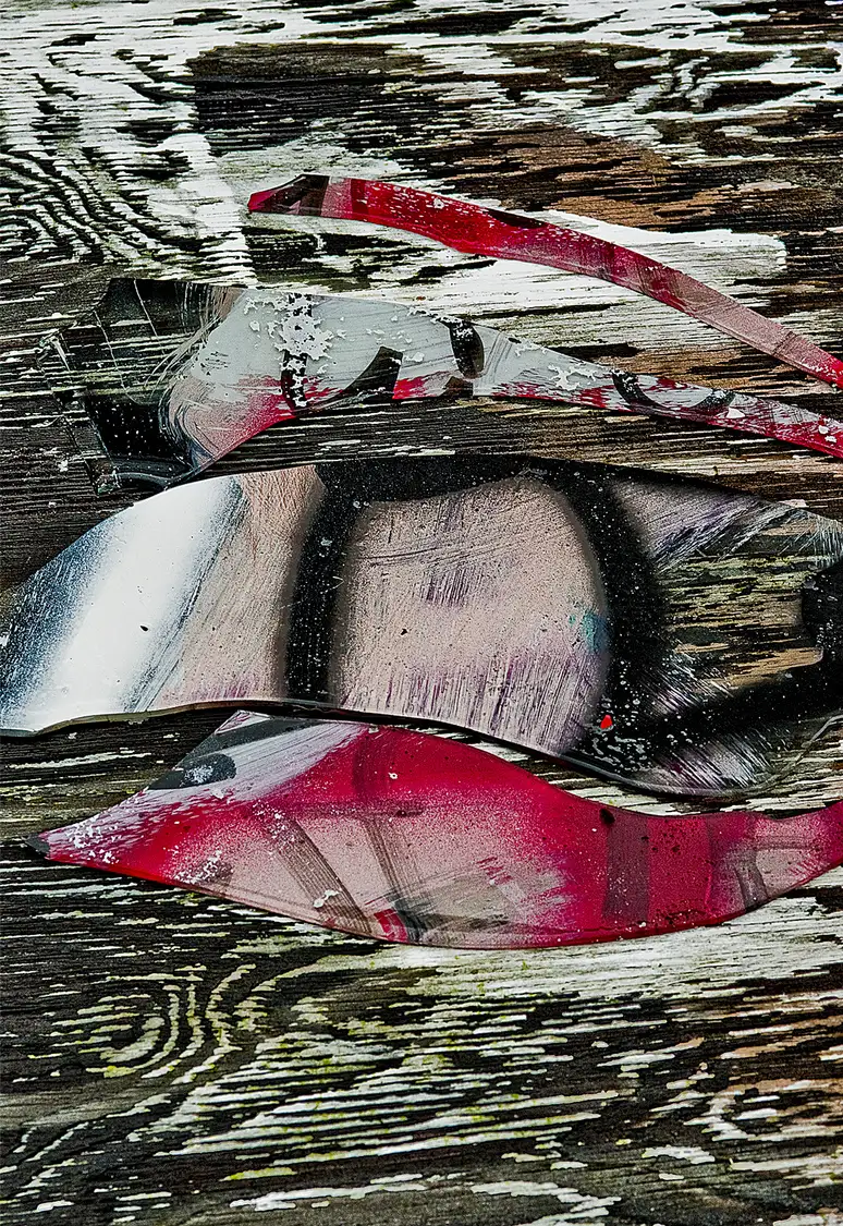 Near the painted glass shards I found a very wet and weathered piece of wood. I carried the shards of glass back to my car for future, but the piece of wood was too large.