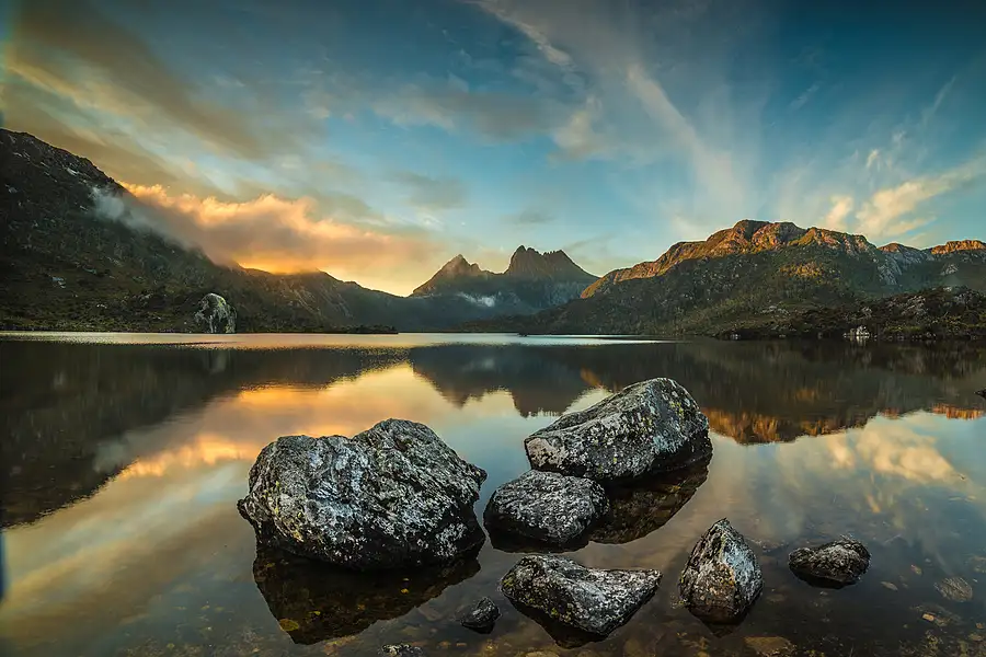 Dove lake at sunrise, 2 images stitched