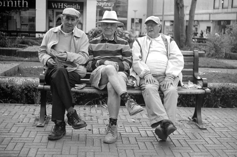 I used my 1966 Carl Zeiss WERRAMATIC camera made in GDR for this photo -- I missed the deadline for 'Commie Camera Week' with this. I was out in Brentwood High Street and saw these three 'Characters' and had a laugh with them -- they said they were going to audition for 'Last of the Summer Wine' ( a famous British TV comedy programe where most of the characters have died) I used outdated Ilford FP4+ and processed in home-made ID11 formula 1+1.