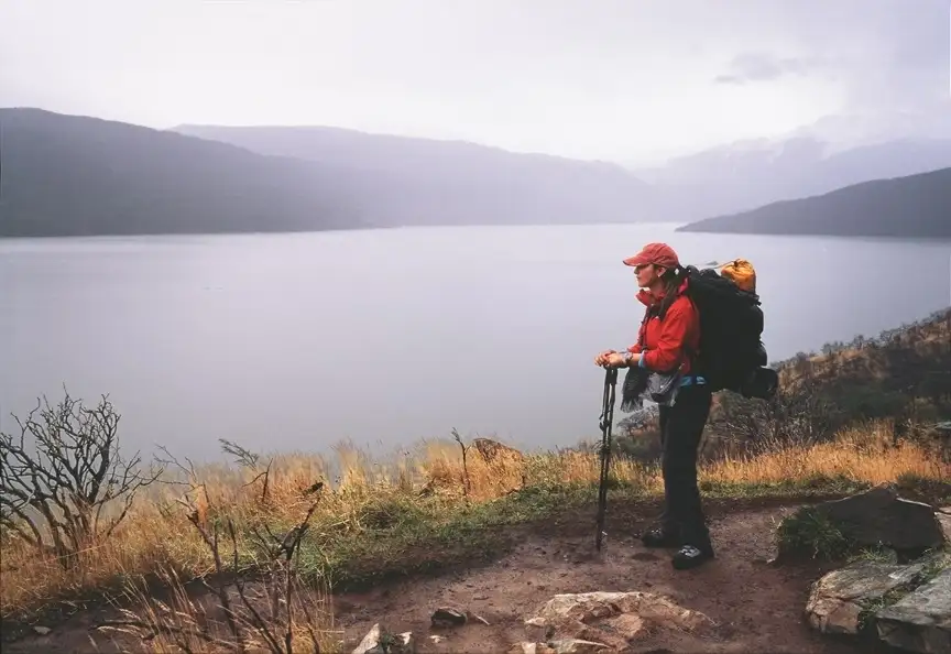 Backpacker. Lago Grey. Patagonia, Chile.