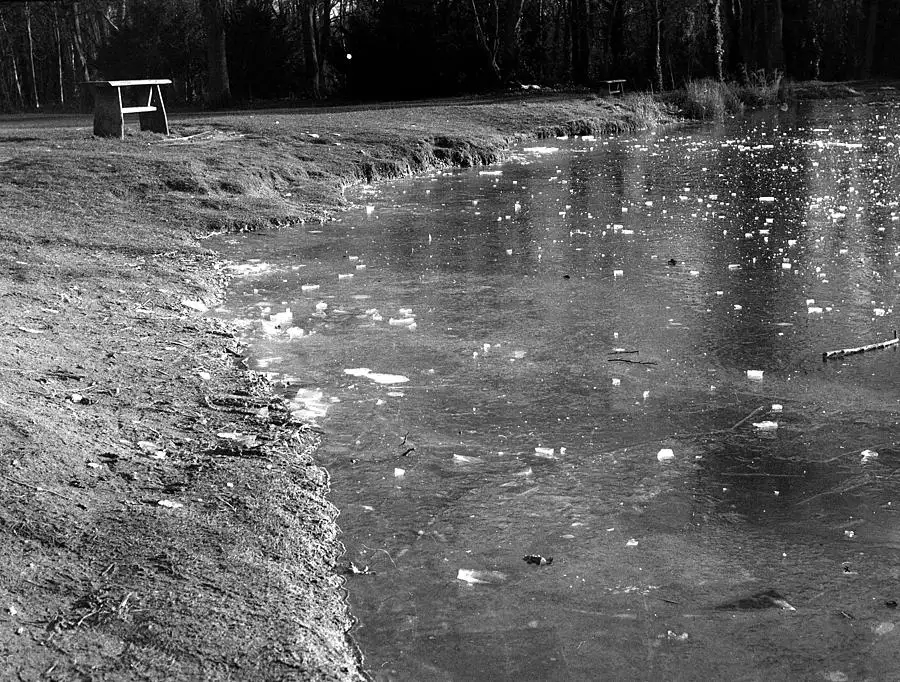 ICY POND : Using up a cut KENTMERE 400 B&W film in my lovely 'Gift ROLLEIFLEX T which I processed in 2-bath developer