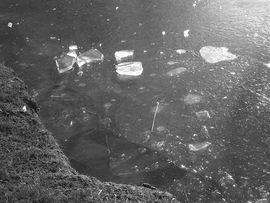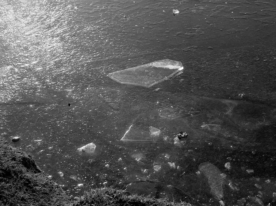 ICE on our Local Pond : Using up a cut KENTMERE 400 B&W film in my lovely 'Gift ROLLEIFLEX T which I processed in 2-bath developer