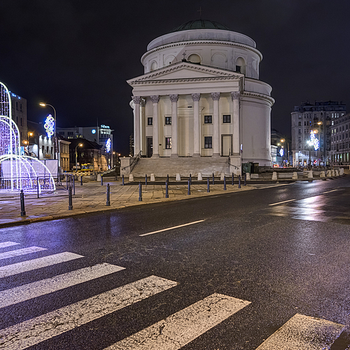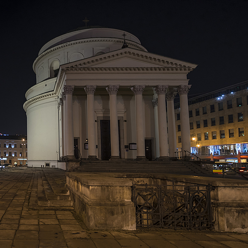 Roman Catholic Church of St. Alexander, main entrances for upper and lower church interiors. Both has independent Chancels, which are used separately at the same time.