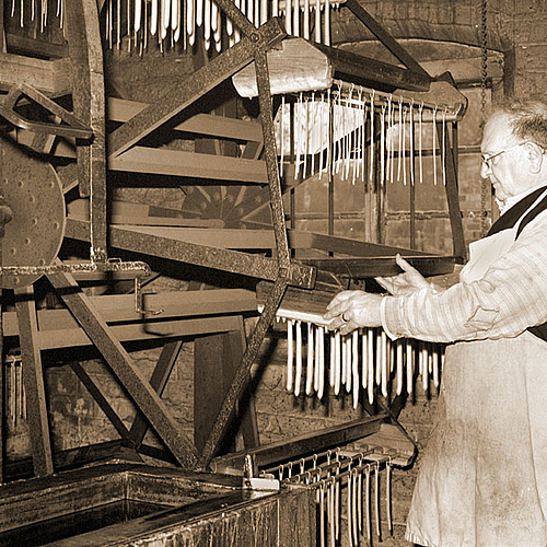 The Candle Maker at Blists Hill Victorian Village, Ironbridge Gorge Worl Heritage Site, Shropshire. Flash -- Sunpak auto zomm 3000. Toned in PhotoShop 7