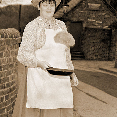 Victorian Pancake Lady !! Blists Hill Victorian Village in the Ironbridge Gorge World Heritage Site, Shropshire, I used 2005 outdated Ilford Delta 400 and fill-in flash from a Sumpak auto zoom 3000.