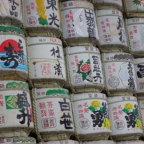 Empty sake drums, at the Meiji-Jingu ( Meiji shrine) in Tokyo