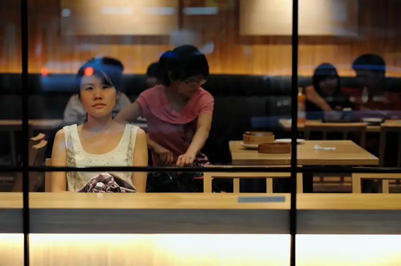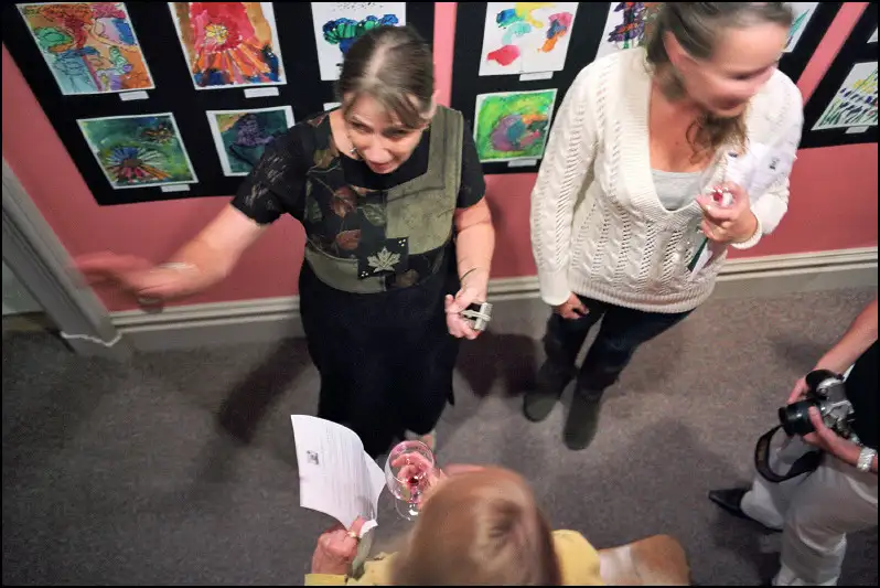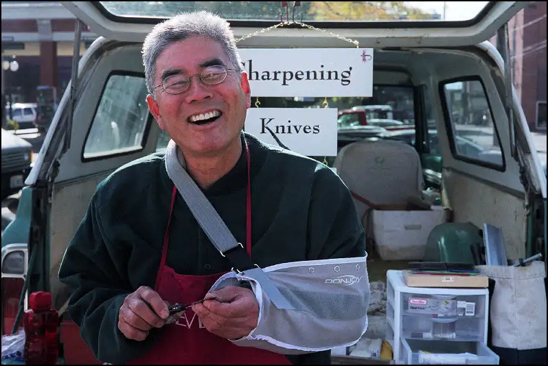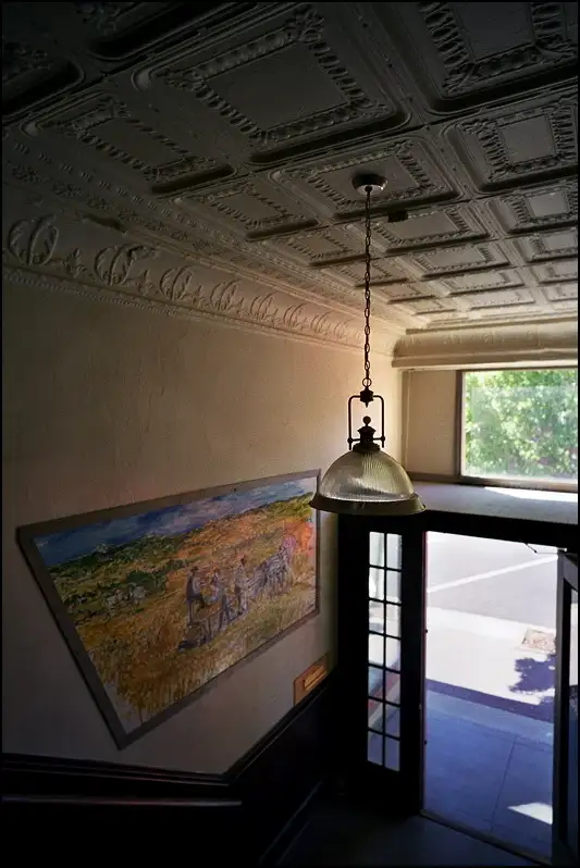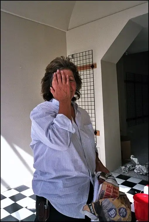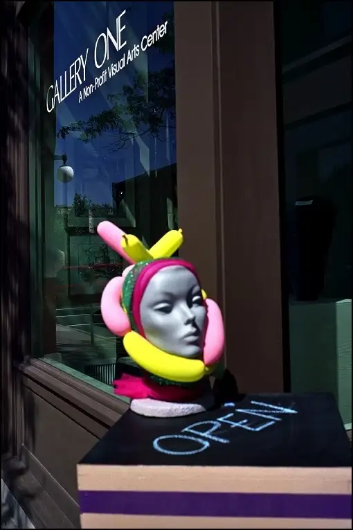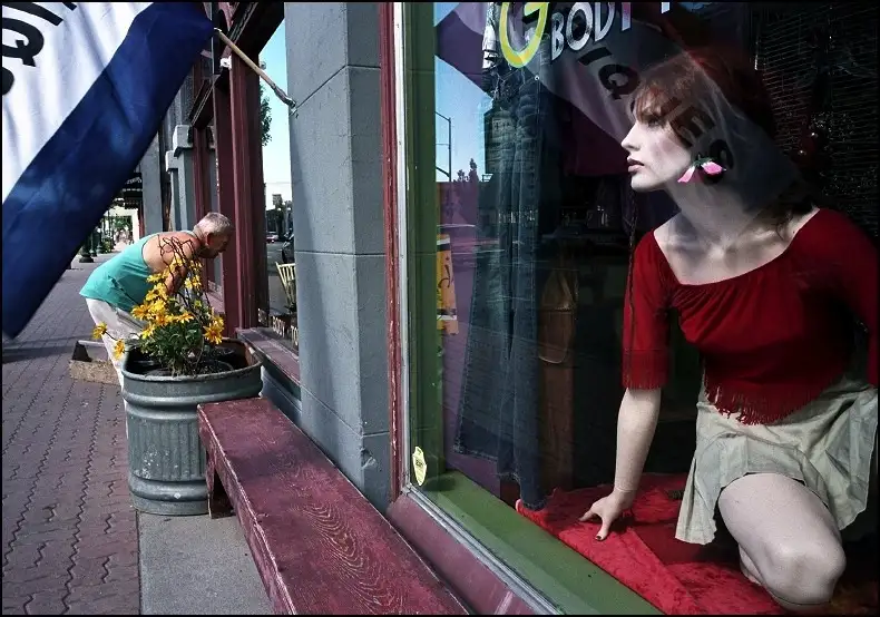 She is from the Downtown Merchants Association, setting up a marketing display in an empty storefront. I assured her I didn't expect her to look like a fashion model, just herself, so for the next photo she put her hand down, but I like this one better.