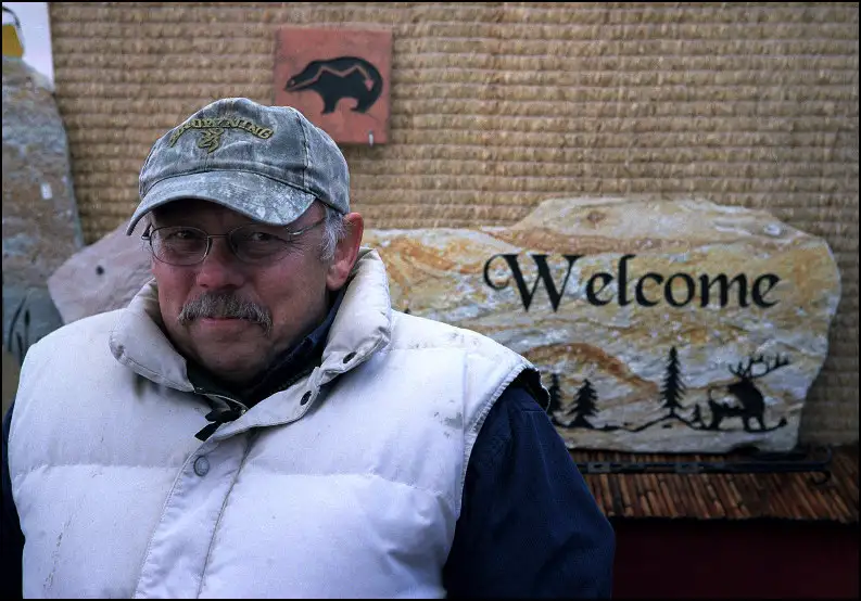 The word "Welcome" cut into the stone by water jet uses a computer font I made years ago and released as shareware: Black Chancery, fun to encounter it in use.