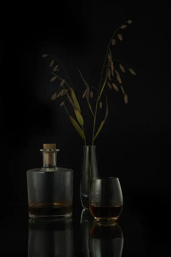 Whisky and grass in glassware. Made using Leica Summilux-R 80/1.4