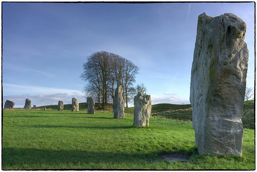 Avebury henge and stone circles are one of the greatest marvels of prehistoric Britain. Built and much altered during the Neolithic period, roughly between 2850 BC and 2200 BC, the henge survives as a huge circular bank and ditch, encircling an area that includes part of Avebury village. Within the henge is the largest stone circle in Britain - originally of about 100 stones - which in turn encloses two smaller stone circles.