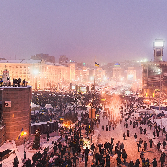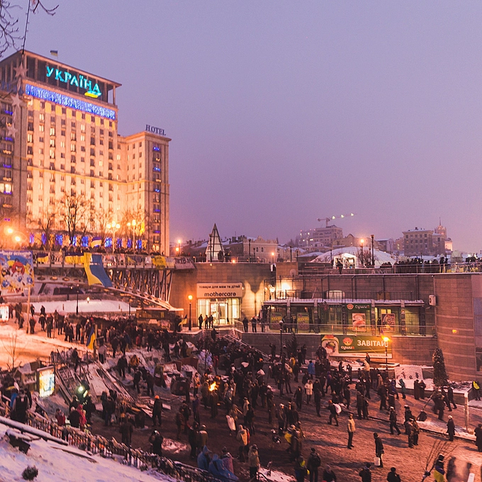 This photo is shot from the bridge on the Independence square. Protestants are very friendly. They have cookies and tea.