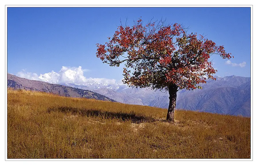 Autumn Tree with Tirich Mir dominating the background.<br />