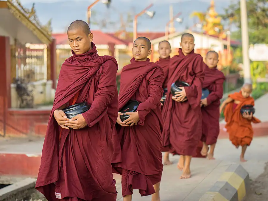 Monks collecting alms
