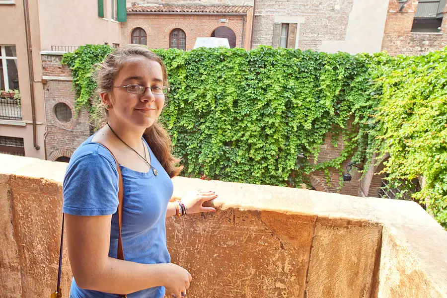 This is my daughter on the supposed Juliette's Balcony in Verona, Italy. She's about the same age as was Juliette during her famous balcony scene in the Shakespeare play.