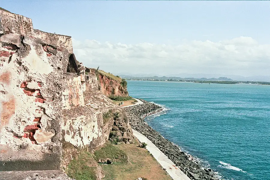 This was taken in Puerto Rico, showing the cliff side of an old fort along the coast.