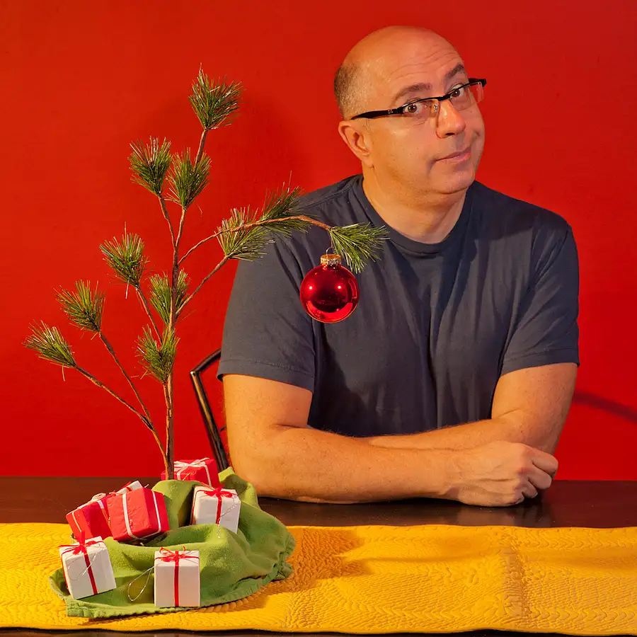 This is a self-portrait of me with one of my favorite Christmas trees. I like to keep Christmas simple--and maybe a bit sad in a humorous way.