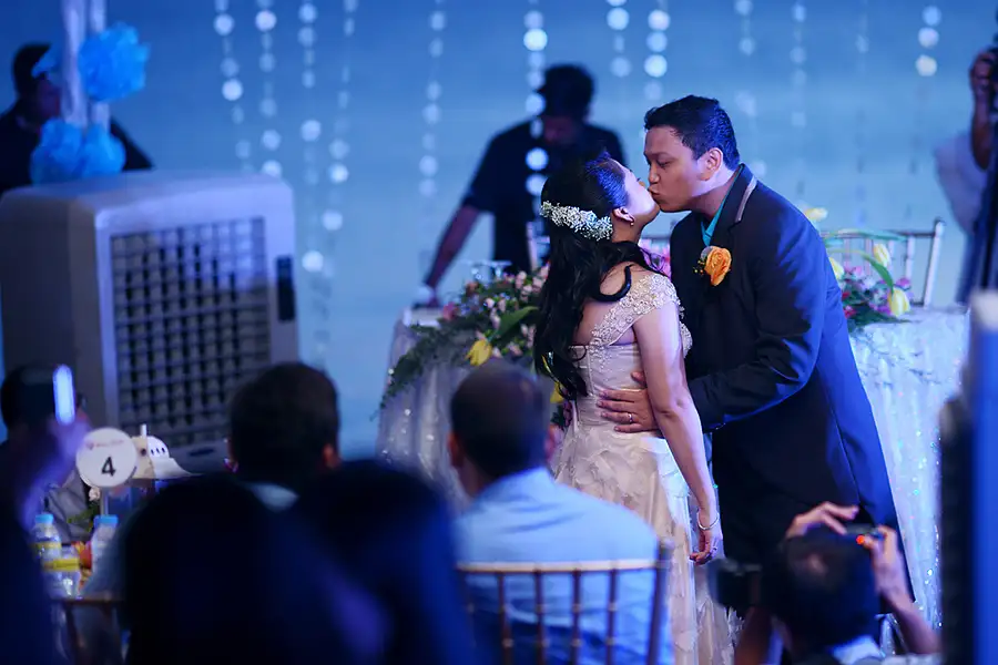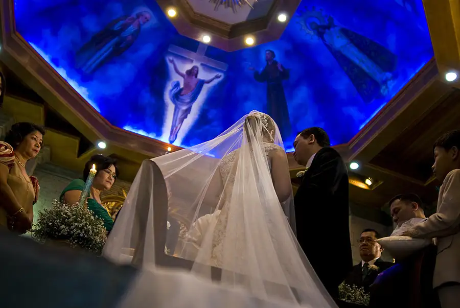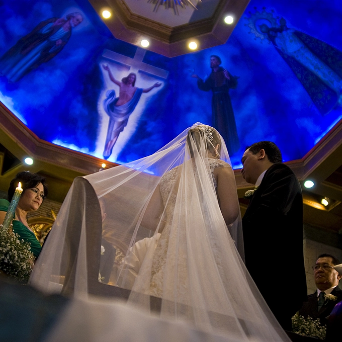 a bride, a groom and their family... above is Him...