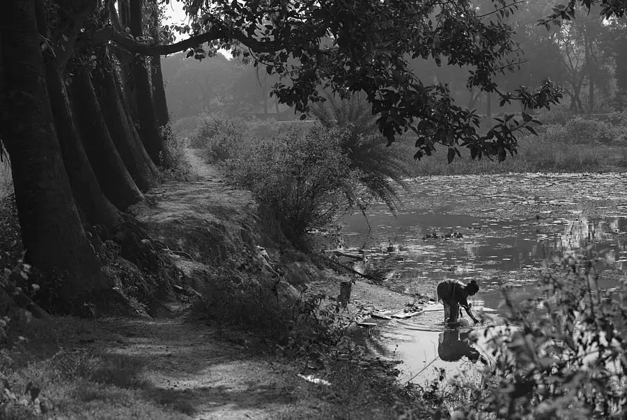 Bathing in the pond