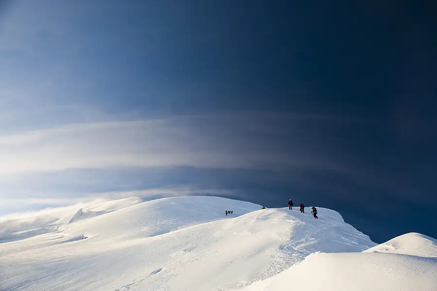 Climbers in a windstorm on Mont Blanc