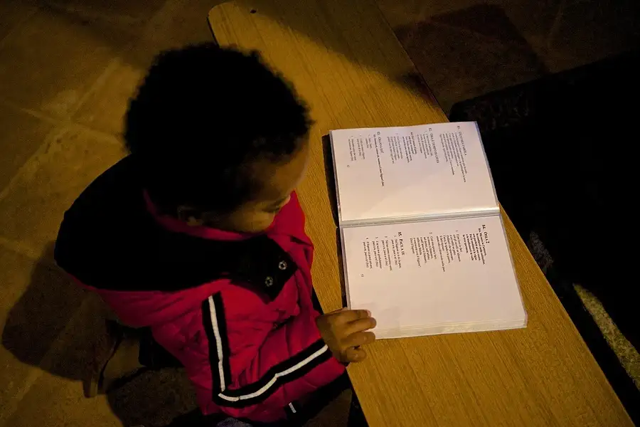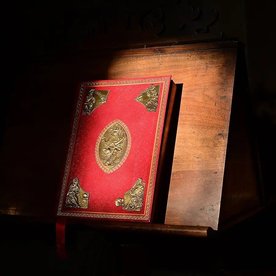 I spotted the light coming from an upper window falling on this book of the Gospel.