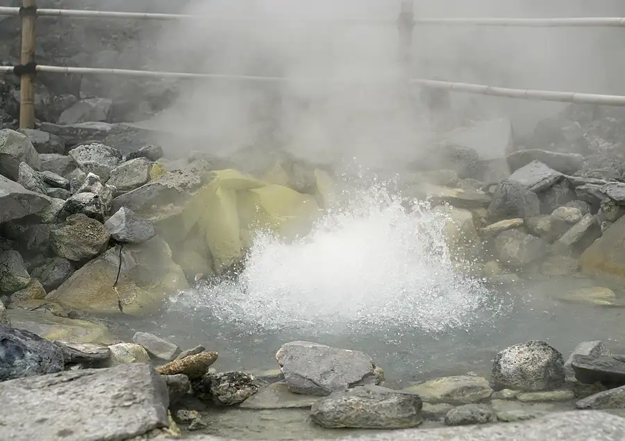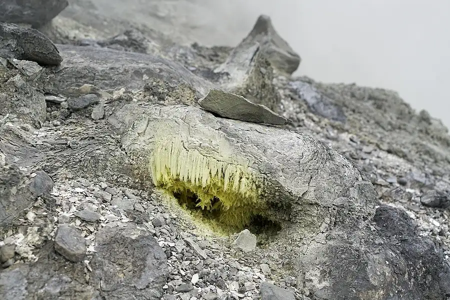 Sulfur fumes from volcano hole