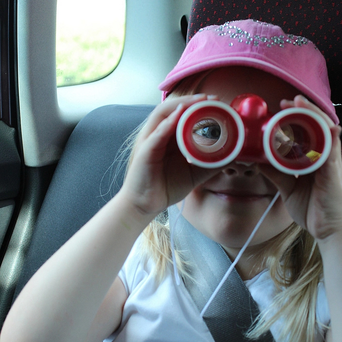 trying out binoculars