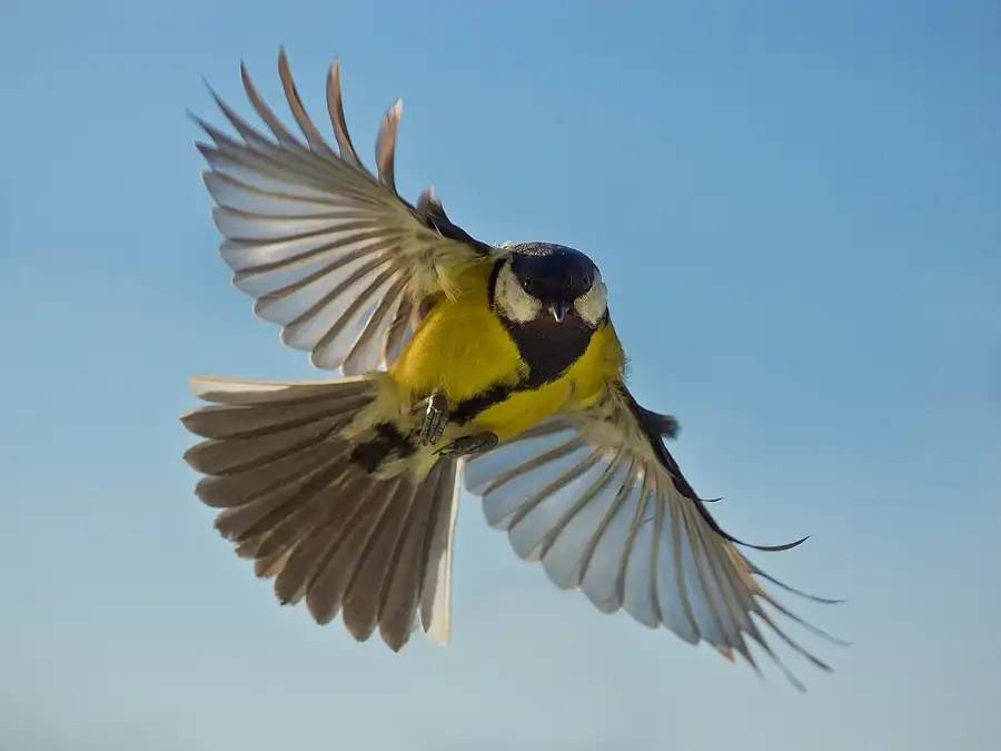 Great tit in flight