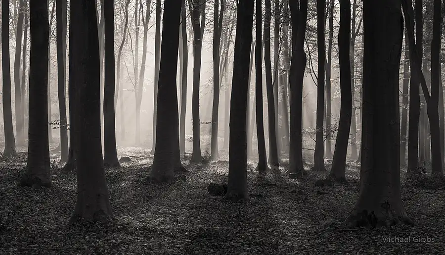 I wanted to convey a fairly "natural" sense of being out in the woods that morning. There was a funny moment when as I was finishing with making this image and preparing to move on Antony Spencer - a photography hero, appeared out of the trees behind me. I took this to be a good omen for the day ahead.