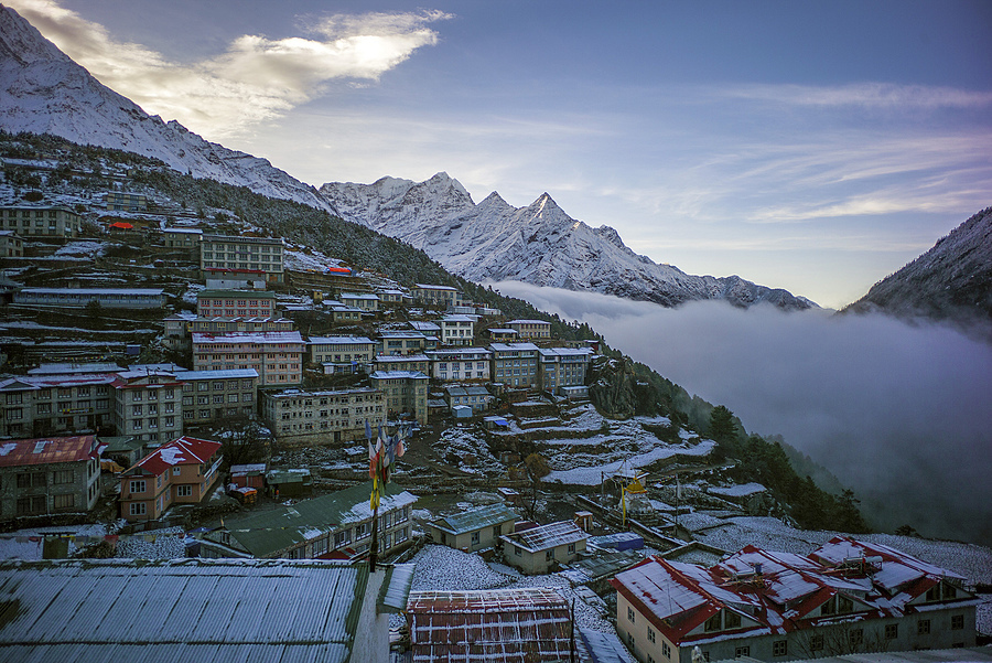 A Kyrgyz Mil-Mi 8 helicopter at Khan Tengri (7010m) and Pik Pobeda (7439m) base camp in the Tien Shan mountains of Kyrgyzstan, about to pick up a group of climbers.<br />
