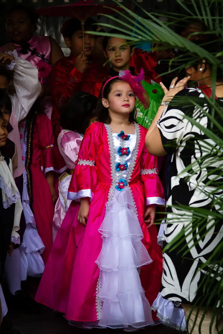 Taken at a local school during U.N. Day. Though the day is extraordinary school events are common. The irony of the photo is that the European aspect of the Eurasian girl is American yet the girl was representing France. I guess it is all keeping in line with the unity theme of U.N. Day. (The Asian aspect is Filipino)