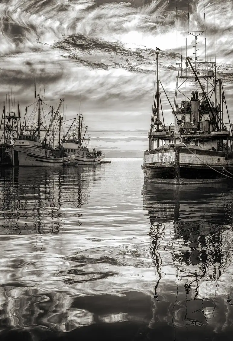 On board the ferry, the mist swirling in and out as we sail pass one of the smaller coastal islands, en route to Vancouver Island