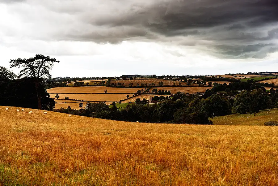Cotswolds field under storm cloud
